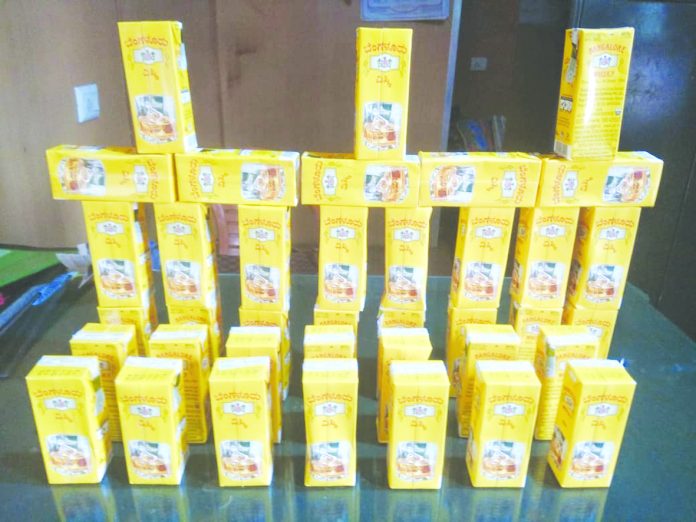 കർണ്ണാടക ട്രാൻസ്പോർട്ട് ബസ്സിൽ കടത്തുകയായിരുന്ന മദ്യം പിടികൂടി