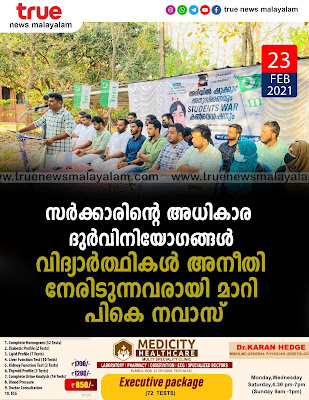 സർക്കാരിന്റെ അധികാര ദുർവിനിയോഗങ്ങൾ, വിദ്യാർത്ഥികൾ അനീതി നേരിടുന്നവരായി മാറി: പികെ നവാസ്