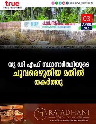 യു ഡി എഫ് സ്ഥാനാര്ത്ഥിയുടെ ചുവരെഴുതിയ മതില് തകര്ത്തു