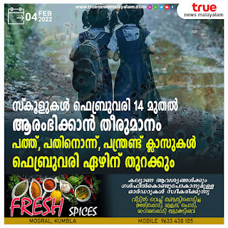 സ്കൂളുകൾ ഫെബ്രുവരി 14 മുതല് ആരംഭിക്കാന് തീരുമാനം; പത്ത്, പതിനൊന്ന്, പന്ത്രണ്ട് ക്ലാസുകൾ ഫെബ്രുവരി ഏഴിന് തുറക്കും